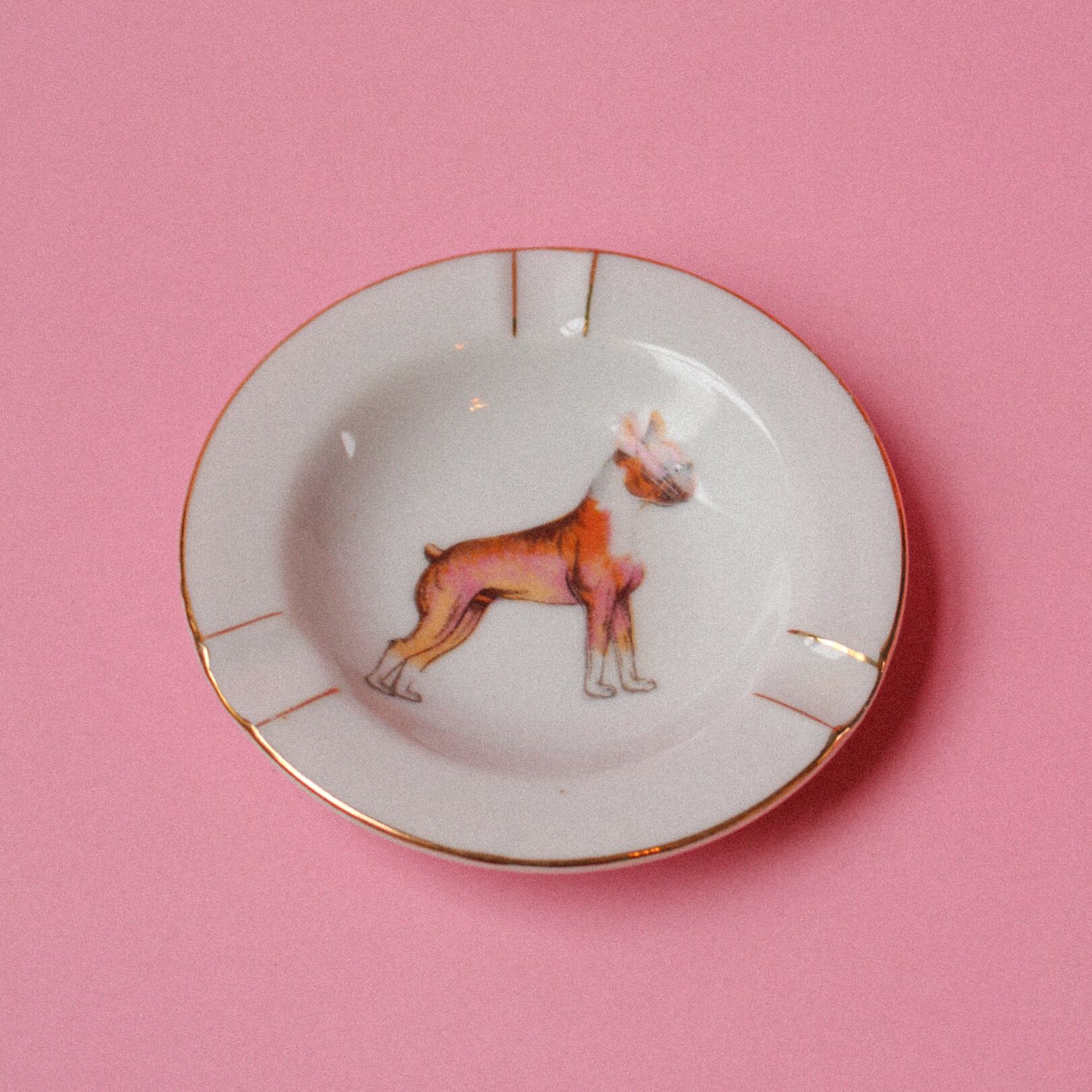 クラシカルな犬のイラストが可愛いアッシュトレイ。
